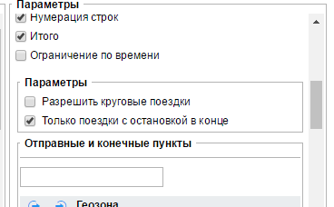• Группировки в отчетах по начальной и конечной точки пути