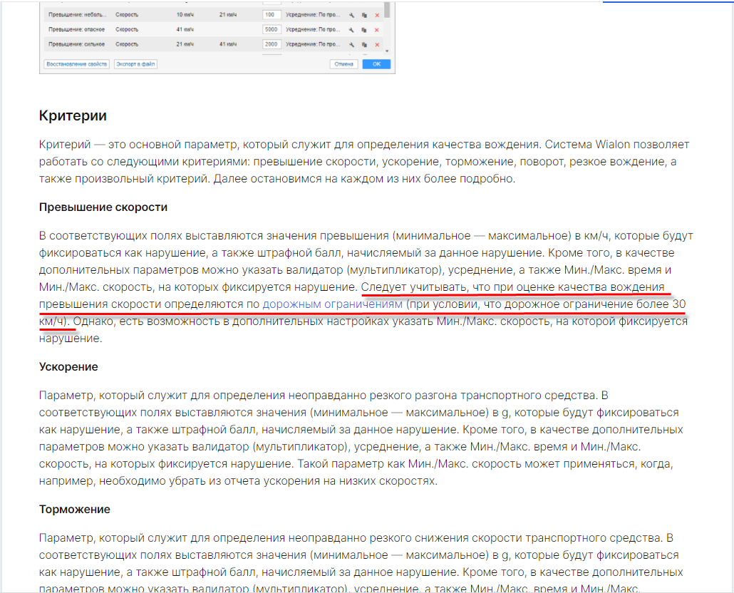 Для того, чтобы отслеживать превышения скорости по фиксированным ограничениям именно как критерий качества вождения, необходимо создавать произвольный критерий с датчиком, настроенным на скорость.