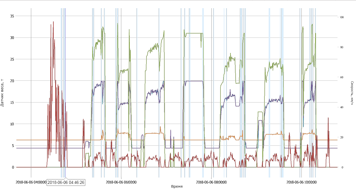 Main reason for this app - example of cargo weight data (attached, green plot - cargo weight in tons, other plots - axle loads).