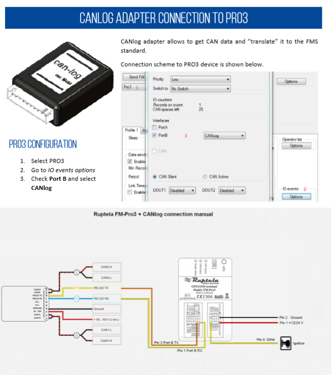 Уточните, пожалуйста, кто сталкивался. Можно ли подключить CANLOG к оборудованию Ruptela, а именно к Pro3\Pro4 ???