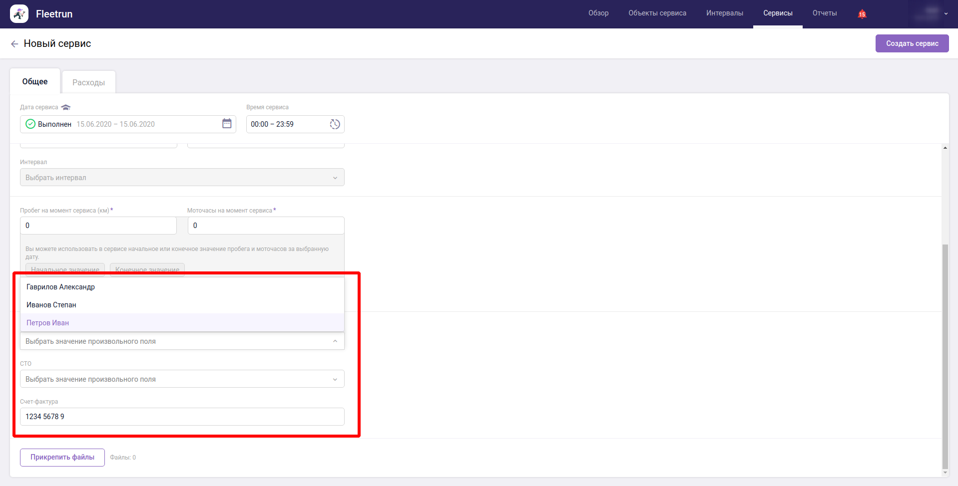 2. Сервис: Заполнение произвольных полей в сервисе пользователем