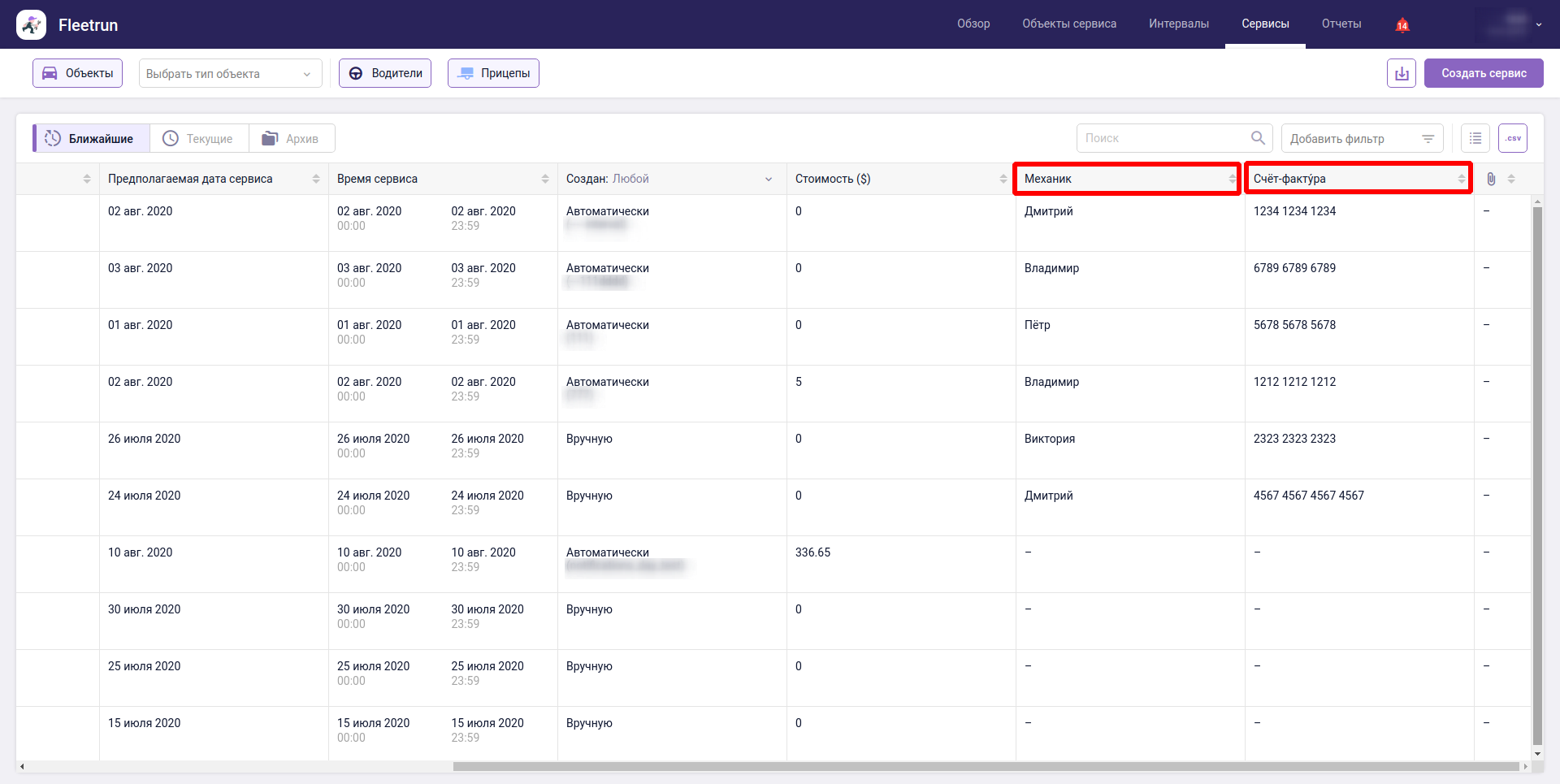 Более того, Вы можете заполнить произвольные поля сразу для нескольких сервисов, используя функциональность "Массовые операции" в списке сервисов.