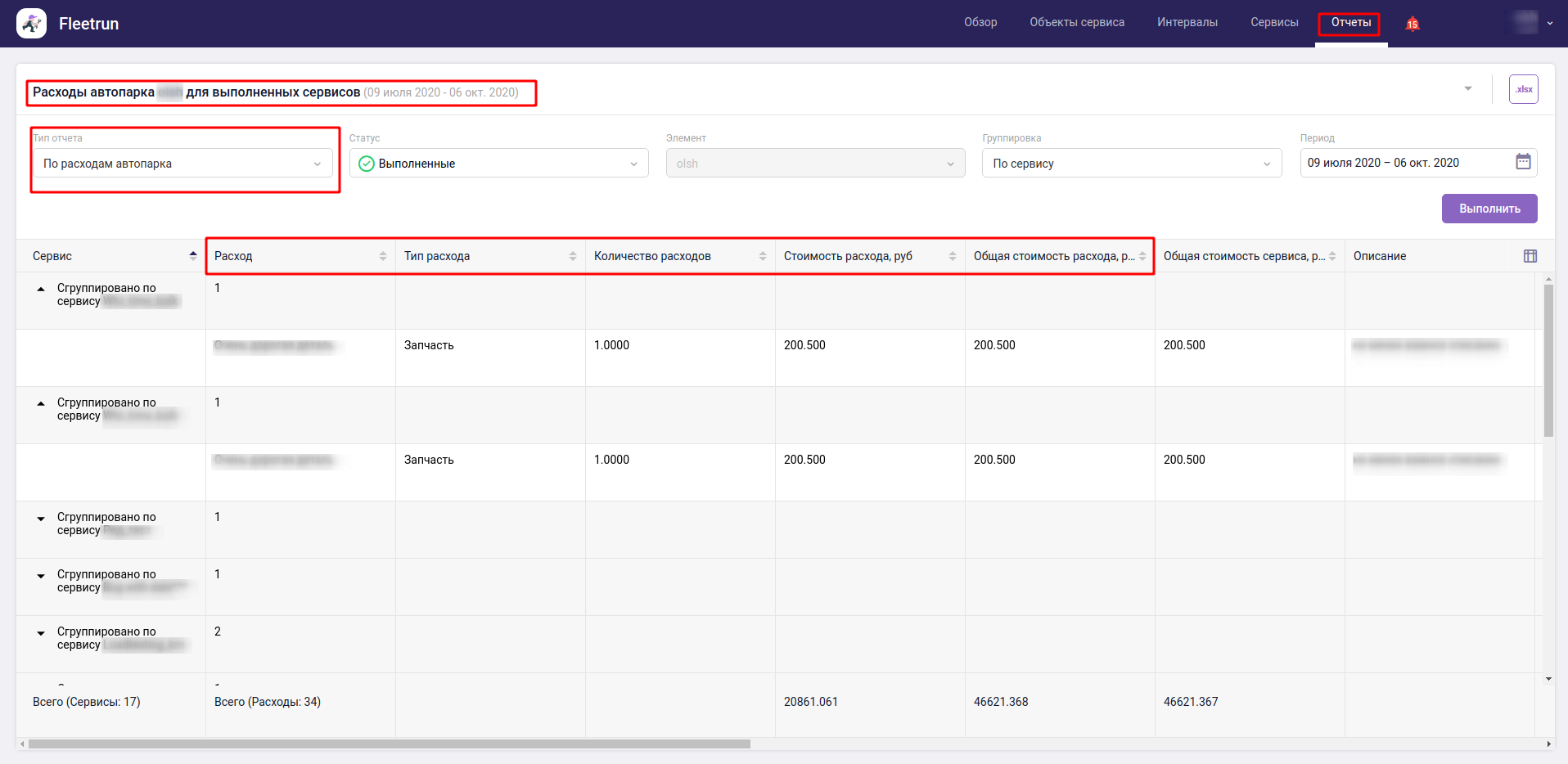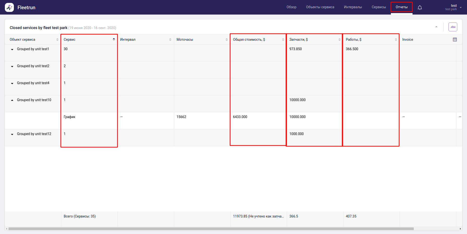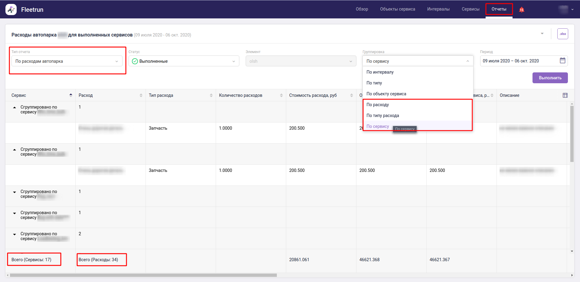 Также Вы можете выполнить отчет по произвольным полям, чтобы увидеть все сервисы в которых заполнено выбранное произвольное поле. Более того, Вы можете применить сортировку для значений произвольного поля в случае необходимости.