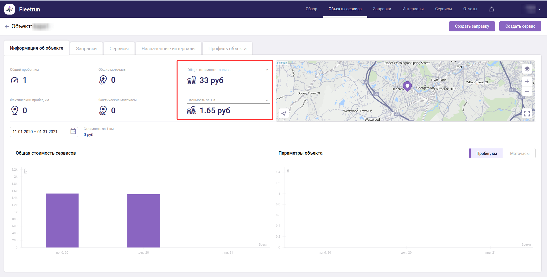После сохранения произвольных полей в панели администрирования, Вы можете заполнить эти поля при создании или редактирования Сервиса, в котором в поле Тип объекта сервиса выбрано значение Объект. Таким образом, Вы уже можете начать собирать нужные Вам данные.