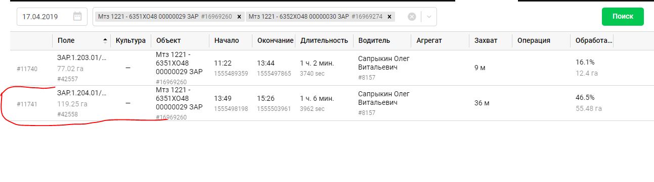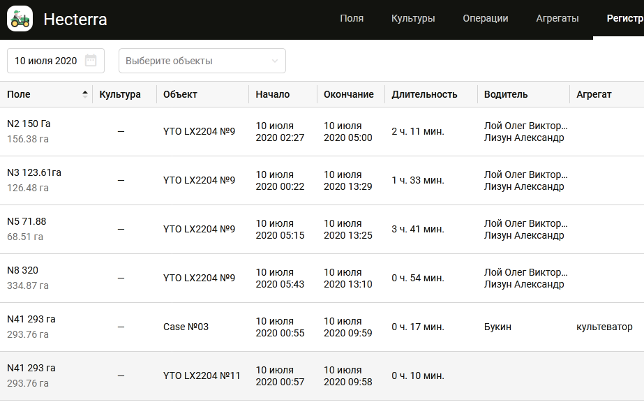 Добрый день! Сегодня 05.05.2023 с утра в Hecterre во вкладке регистрация не производит поиск обработок , проверили на на многих объектах(пробовали выставлять минимальный пробег относительно поля, создавал новые поля).