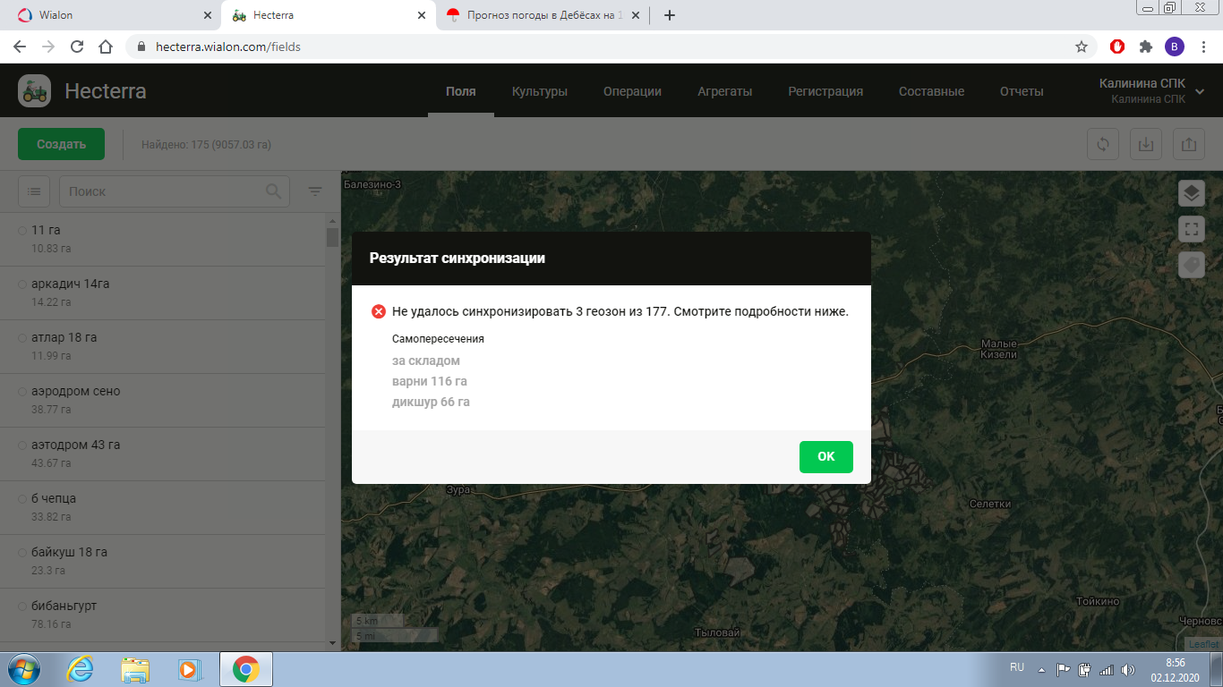 подскажите пожалуйста. не могу синхронизировать геозоны между виалоном и хектеррой - пишет самопересечение границ. Поля мерял объездом по границам поля со смартфона в приложении навигатор полей. некоторые поля синхронизировались а некоторые нет.