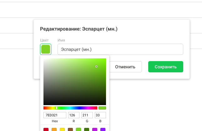 Добрый день! При редактировании цвета у культуры в конце списка палитра уходит за нижнюю границу.
