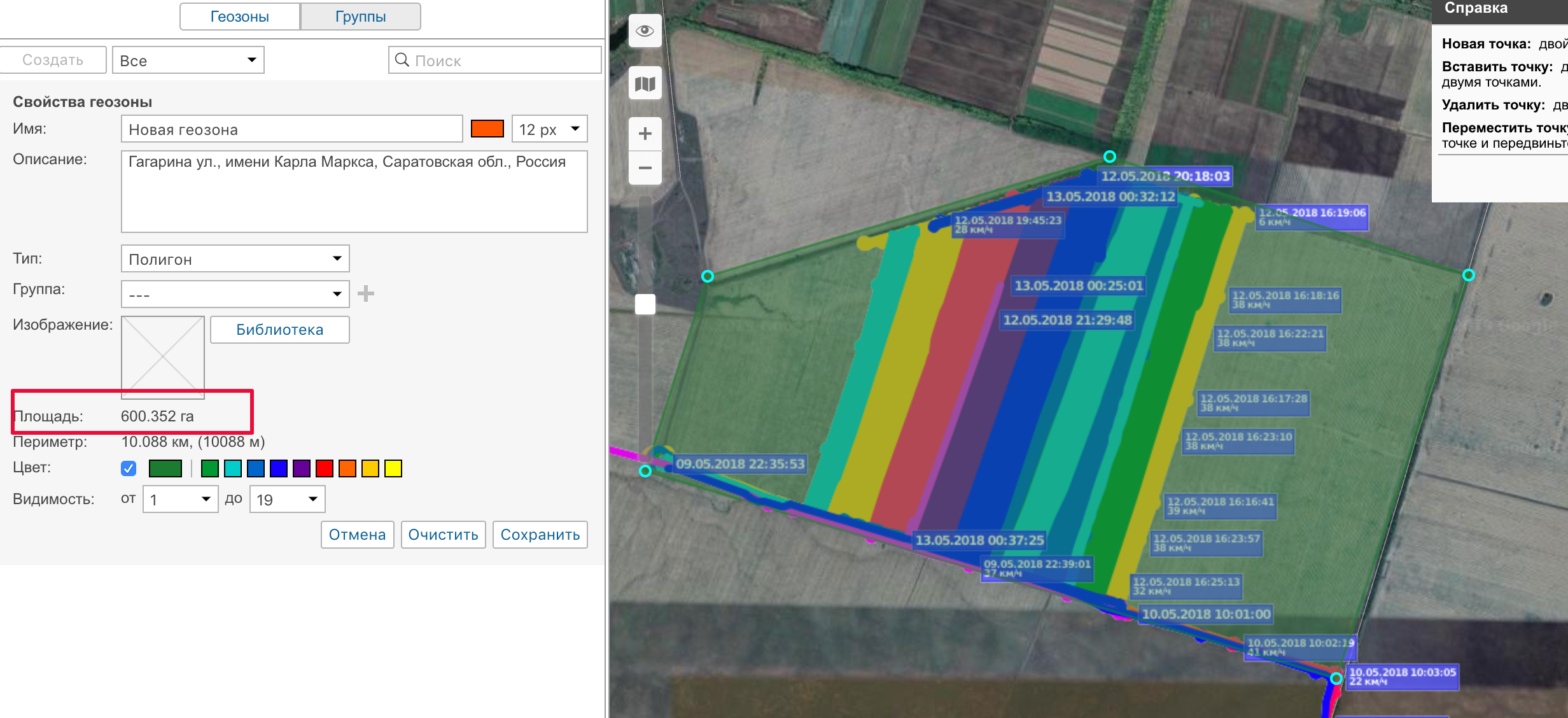 Не знаю, что не так делаю - что там вообще можно не так сделать - но созданная прямо в Hecterra геозона/поле не сохраняется. Пробовал на двух разных учётках. Какие дополнительные данные нужны для вашего ответа?