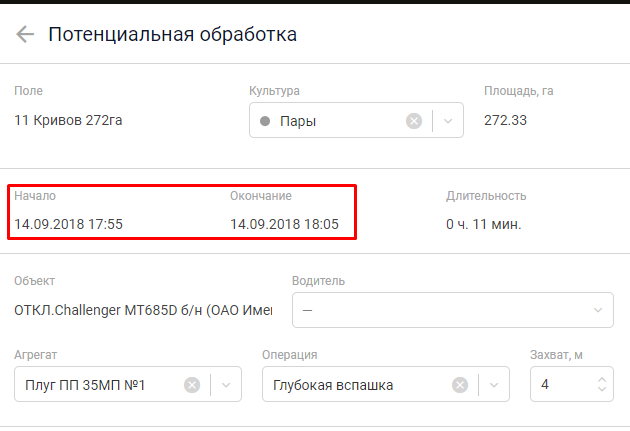 2. Если поле обработалось за несколько дней + смены механизаторов - хотелось бы посмотреть общую картинку по этому полю, операции, технике сразу за несколько дней. Для общей картины.