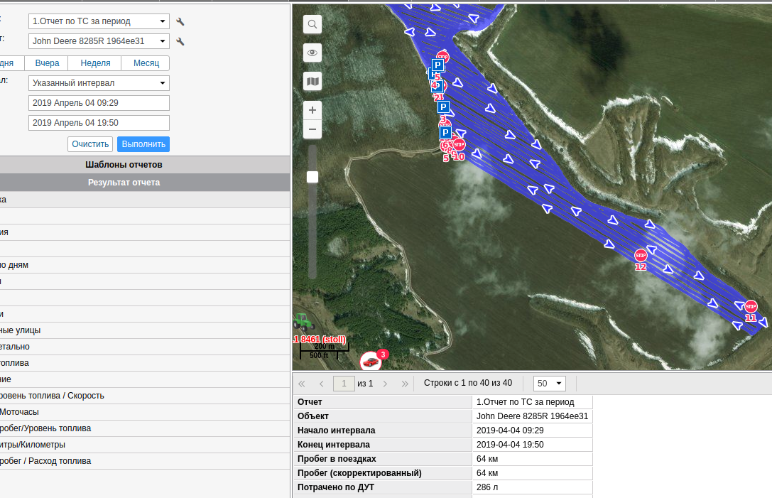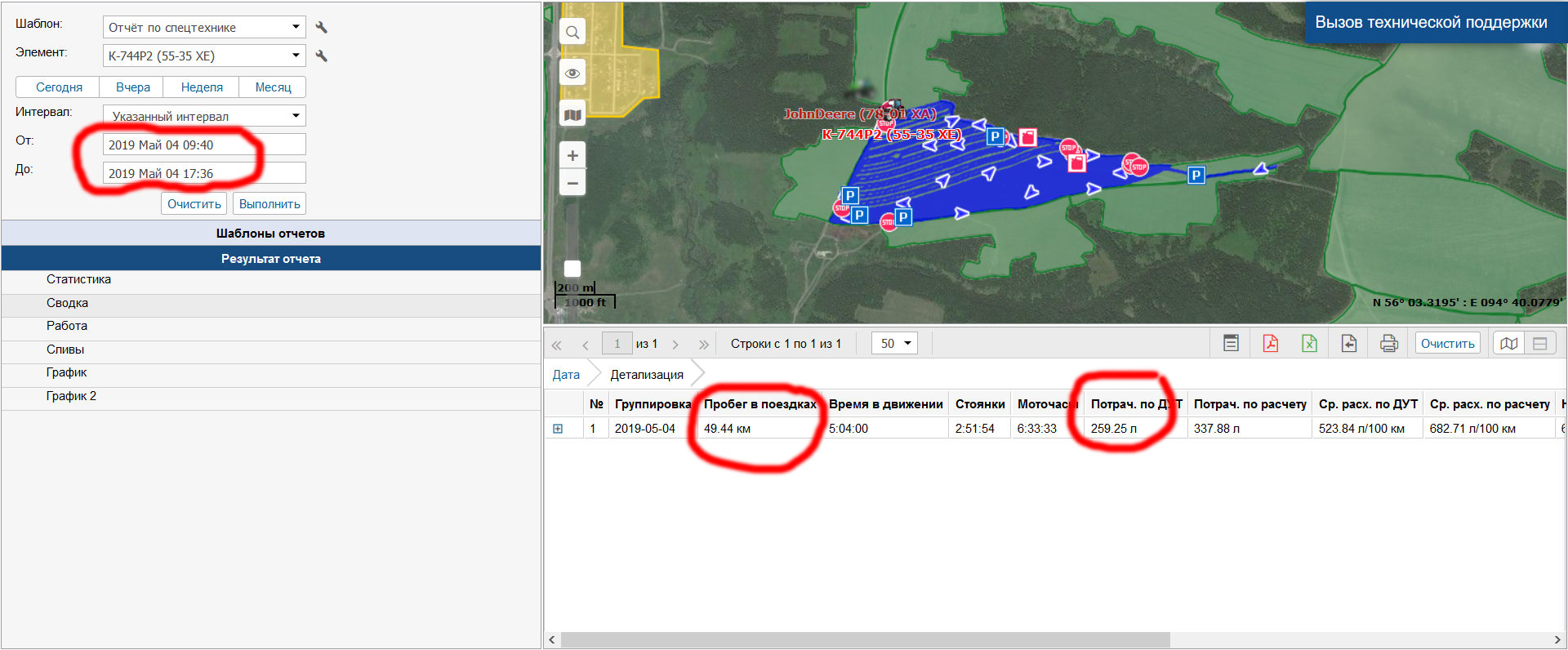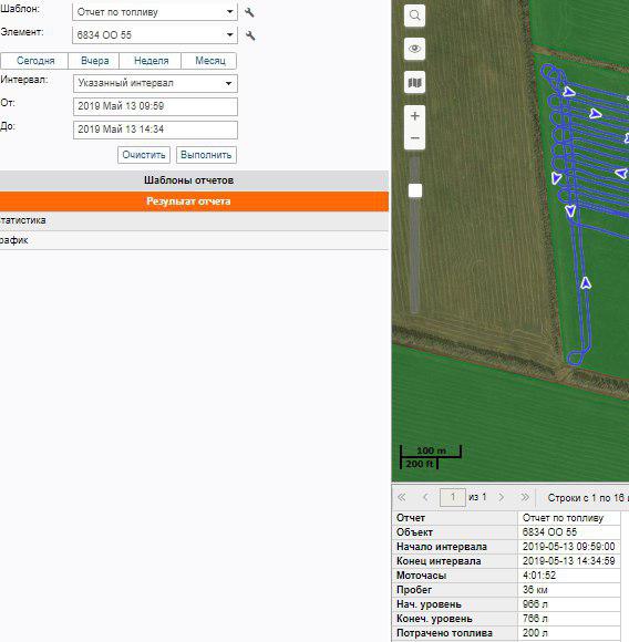 4. Топливо в обрбаотке рассчтывается по отрезкам в поле и в непосредственной близости к полю (развороты), так что если выполнять на виалоне отчет за тот же период, то цифра может и не совпадать (особенно, если объект на этом же интервале обрабатывал еще пару полей).