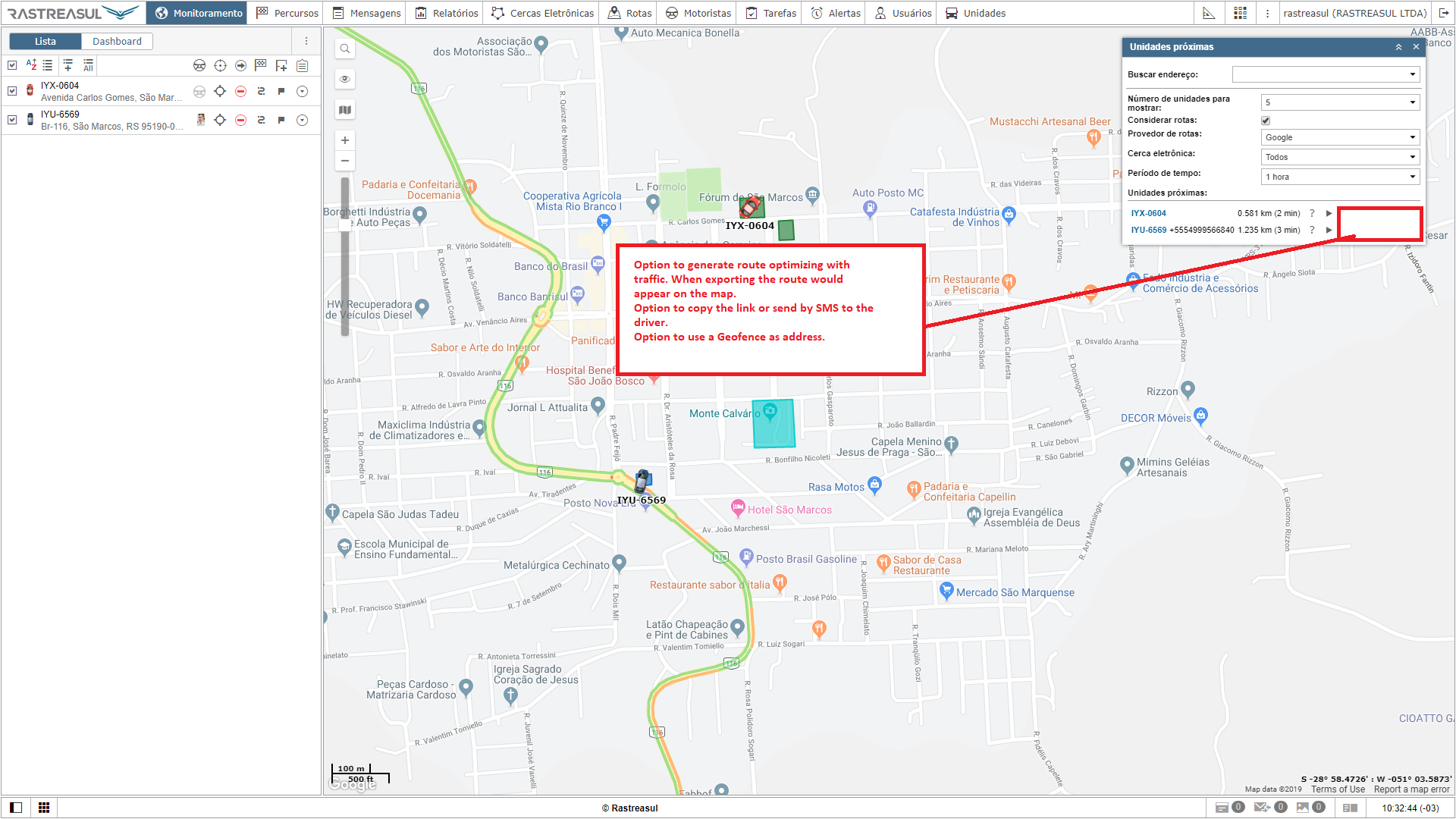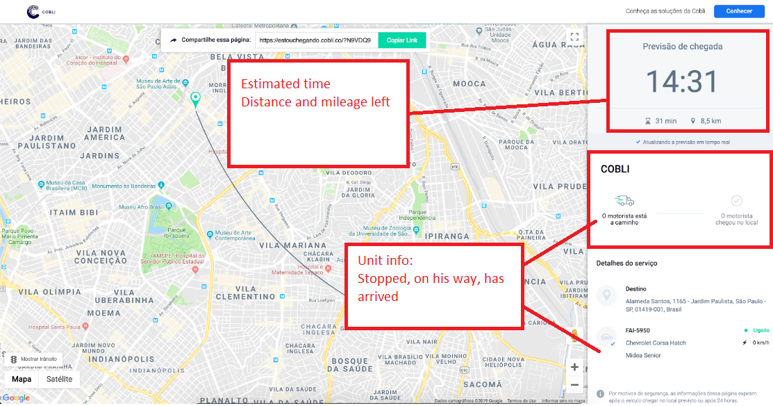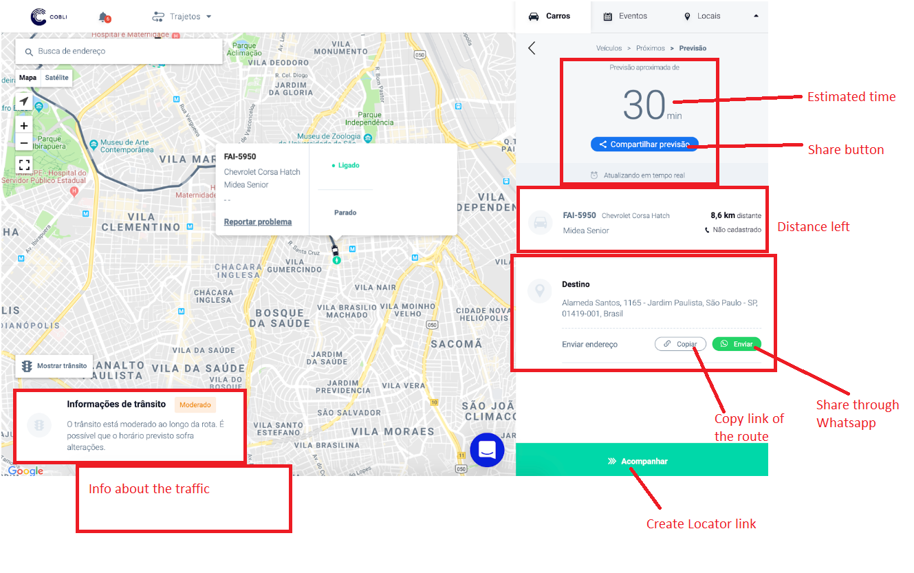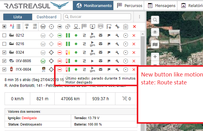 4. In the Monitoring - to add a new icon showing the progress of the route + quick share by link