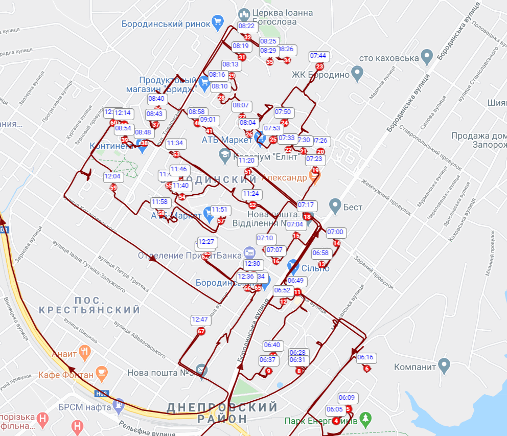 Topic: Отображение времени стоянок, остановок на карте