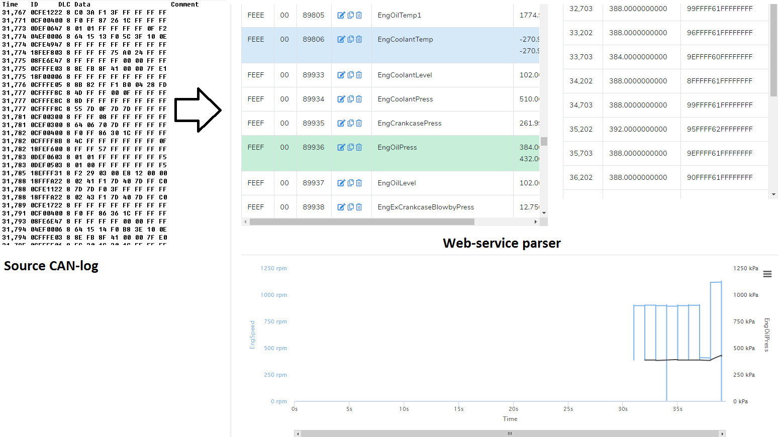 There are a lot of CAN-USB scanners which produce raw CAN-log files for analysys. Someone is experienced enough to recognize CAN J1939 PGNs in raw format like "FEF2, FECA etc". But we will make analysis easier.