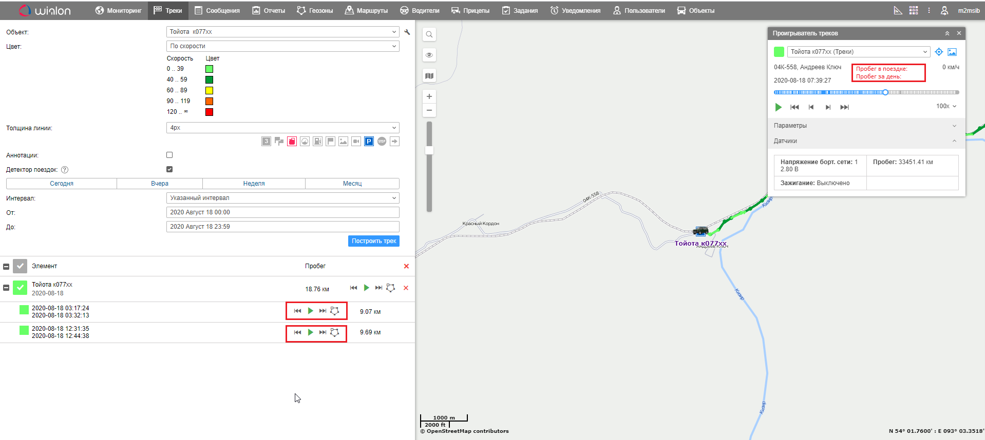 На сервисе Виалон Хостинг для воспроизведения в плеере конкретной поездки нужно отдельно строить трек за тот период, за который была поездка, отдельно воспроизвести поездки нельзя, отдельного же пробега за день/смену/поездку в плеере вовсе нет.