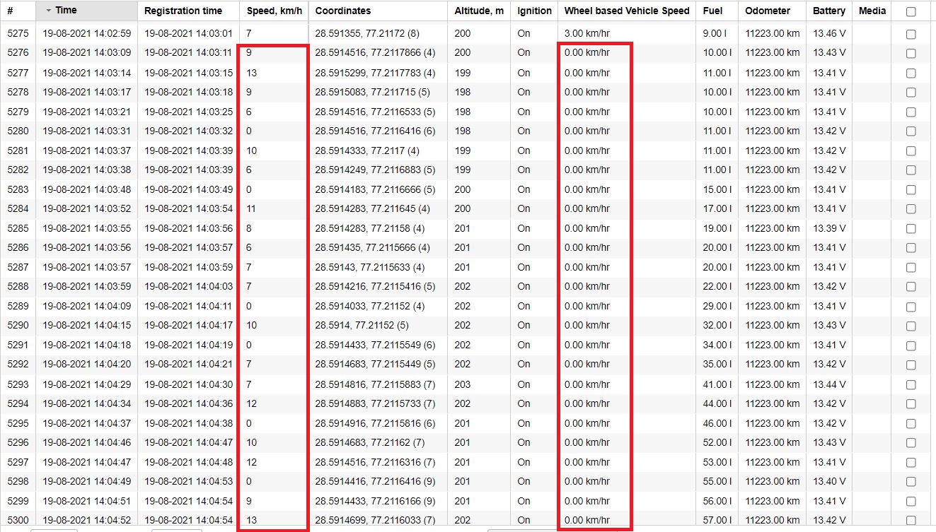 My customer is using an OBD device which is capable to provide OEM data (fuel level, real odometer value and real wheel based speed) directly from the vehicle. Yesterday I had a situation where there was a fuel filling done in the vehicle but the same did not get recorded in the reports under Fuel fillings table. The reason was -  In the fuel level sensor settings, we have the option selected as "Detect fuel filling only while stopped". It appears that during the time of filling, due to the tracker and gps issue, the unit was continuously giving some false speed based on data received from gps. But in actuality, the vehicle was parked at the time of filling. This is evident from the value of the custom sensor "Wheel based vehicle speed" which is correctly shown as "0" during the time of filling. Please see attached screenshots.