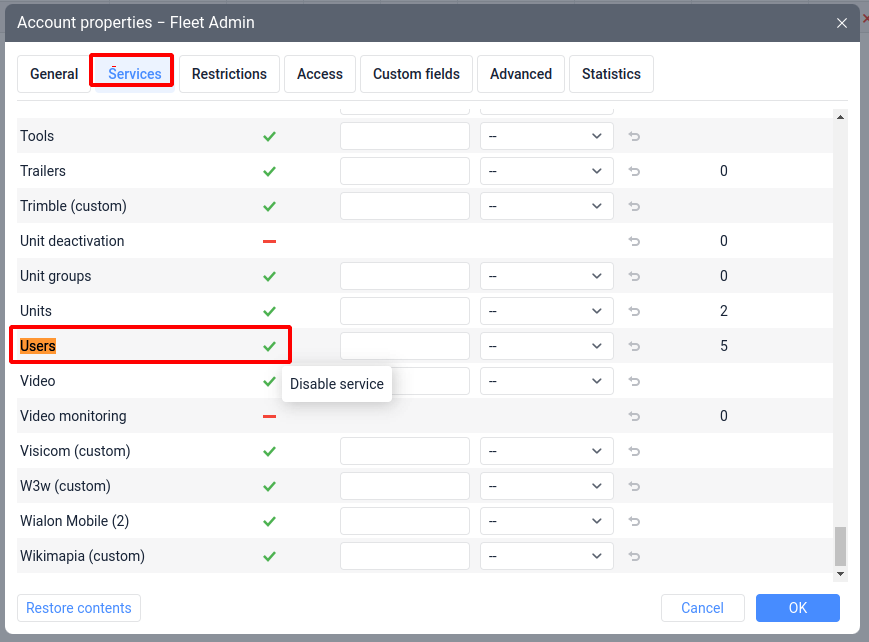 v.sioros the Users tab can only be hidden if the relevant Service in an Account properties is disabled: