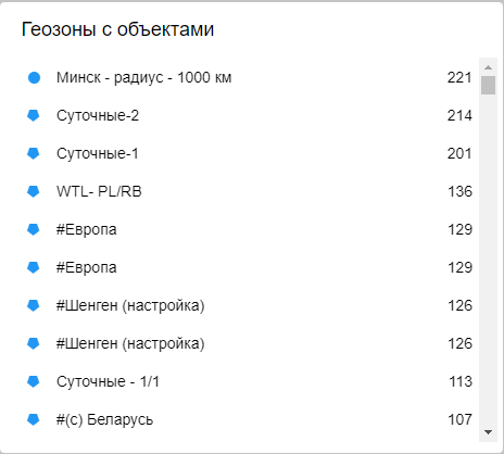 - Возможность сортировки Геозон в блоке "Геозоны" по имени, сейчас они сортируются по количеству объектов, что не совсем удобно (Файл#1);
