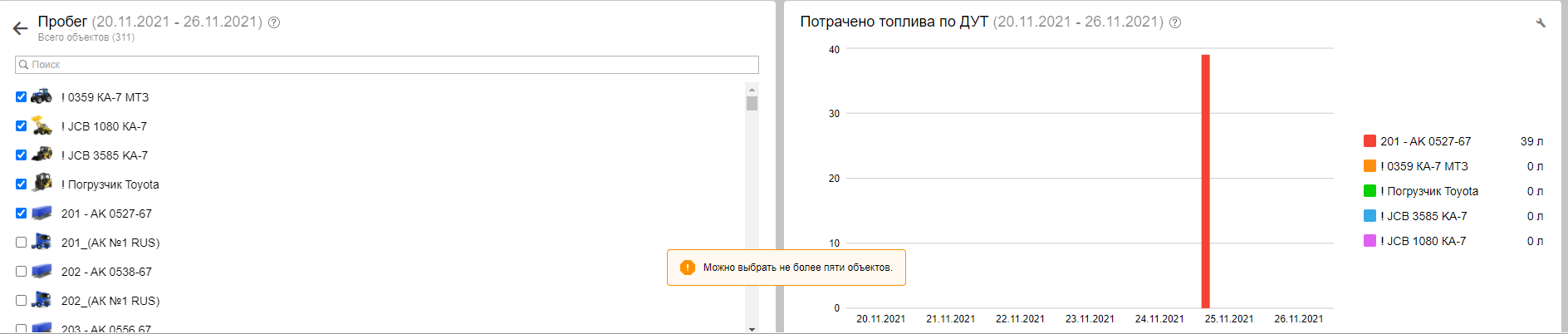 - Возможность добавления более 5-ти объектов в блоках "Пробег" и "Потрачено топлива по ДУТ" (Файл#2);