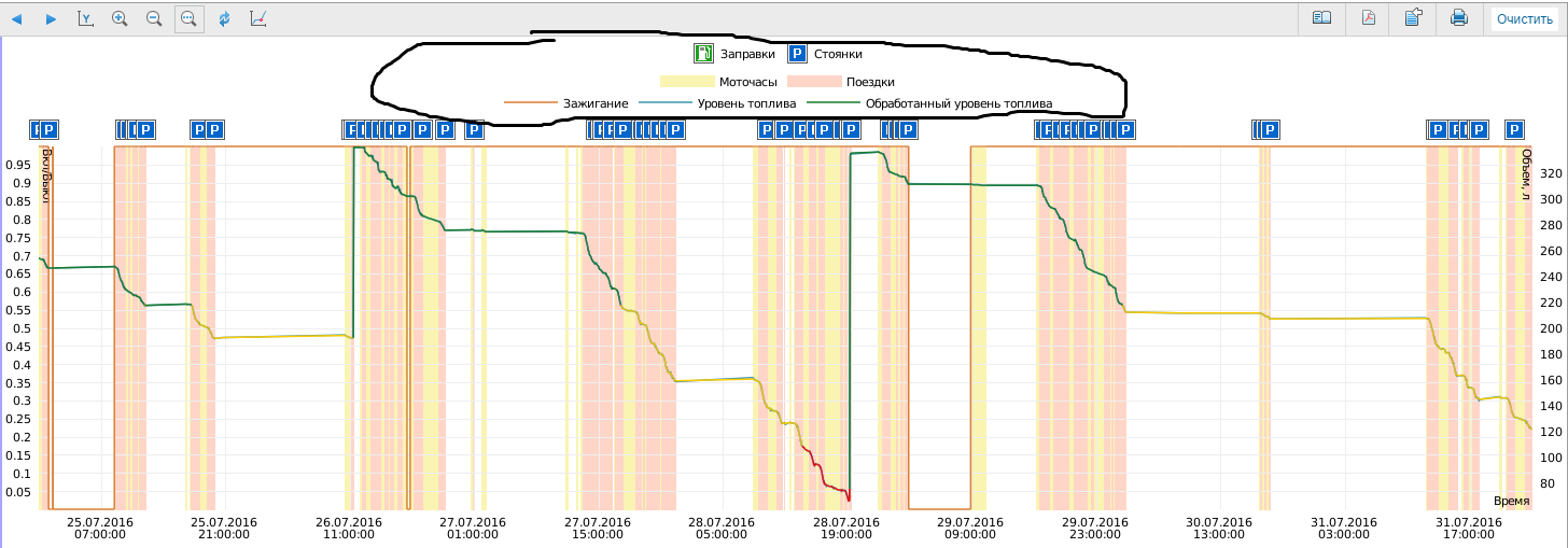 1. У заправок и сливов хотелось бы видеть весь промежуток т.е. как то выделить от начала и до конца, а не просто отметкой где то в середине.