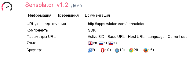 На конференции Телематика 2013 Осень был анонсирован новый Apps Sensolator, который предоставляет удобный интерфейс для мониторинга стационарных объектов. Главное отличие интерфейса заключается в том что для каждого объекта появилось дополнительное окно в котором можно настроить отображение текущей телематической информации в виде стрелочных датчиков (типа тахометр), градусников, тумблеров, лампочек и т.д.