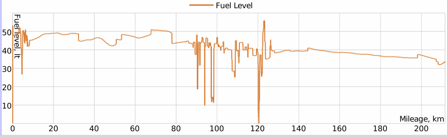This is a moving vehicle with a 60L tank (Double Cab) , Most of the time I get accurate reports but when the fuel level is low (around 15-20L) and if the vehicle is climbing a mountain it gives wrong fuel filling information.