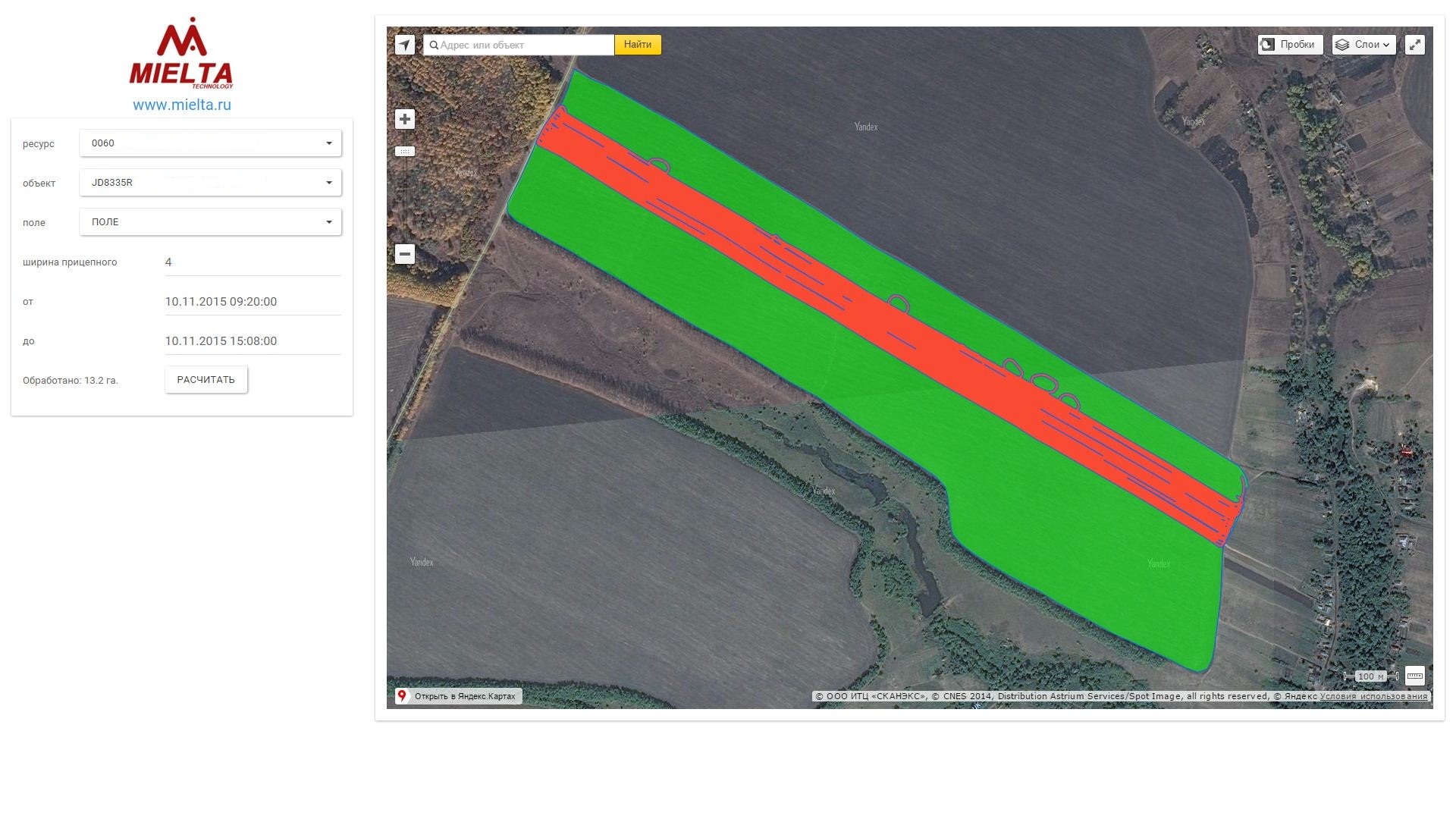 Предоставляем Вам возможность рассчитать площадь обработанного поля с учетом ширины прицепного. Расчет исключает повторные проходы техники в указанном временном интервале и геозоне. Максимальный промежуток расчета - сутки.