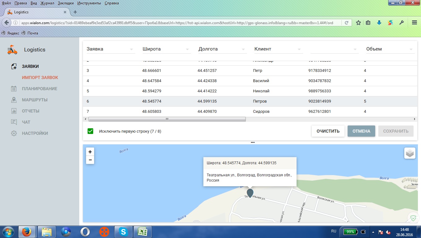 Пришлите, пожалуйста, на support@gurtam.com или voan@gurtam.com: данные учетная записи (логин и пароль), на которой возникает описанная проблема, пример файла и пример запроса (если вы импортируете через API)