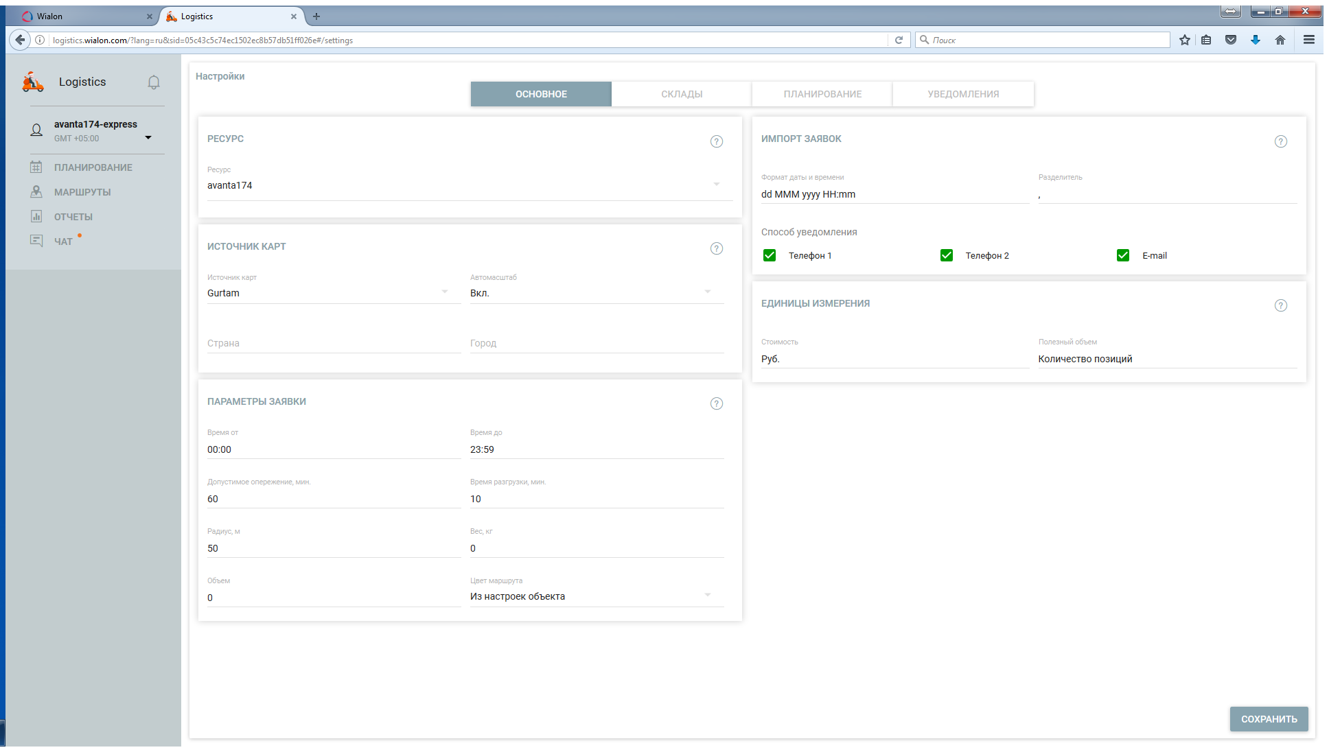 Также обратите внимание на формат времени - он должен совпадать в форматом времени пользователя Wialon либо с форматом из настроек приложения.