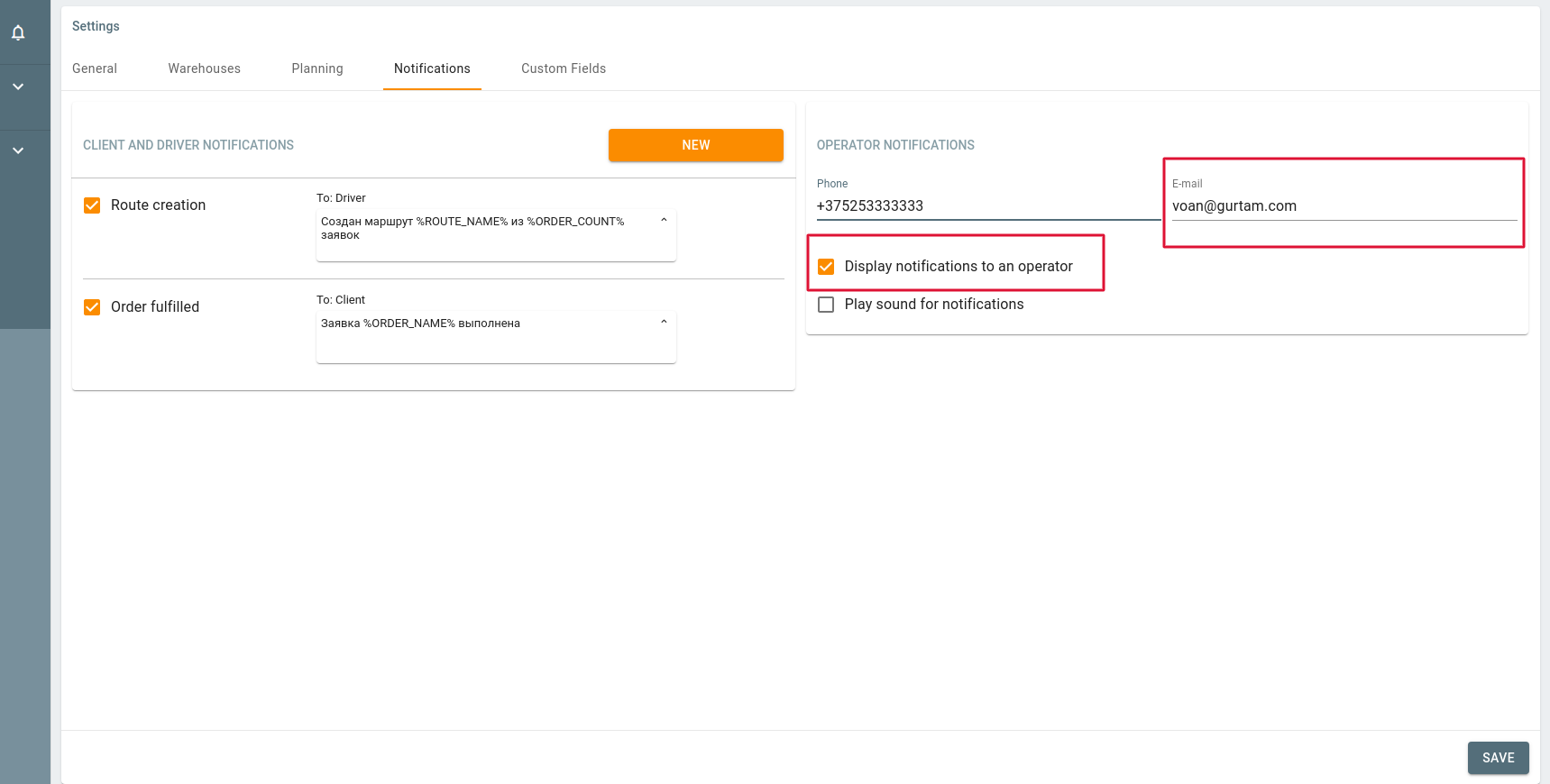 We plan to add the ability to send notifications to ALL customers with information about planned delivery time.