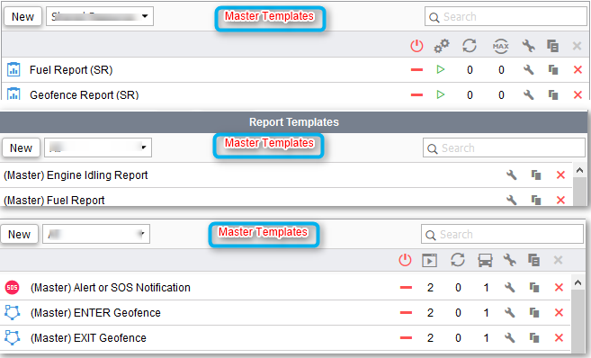 Customer suggested that we have a separate button option "Templates" next to "New" button with each of the Reports, Jobs and Notifications tabs, that contains master Templates for customer from which they can setup and build individual reports etc. for each user/location as desired. Currently we define these "Templates" by prefixing them with "(Master)", from which they copy and rename to define for each user, however these are all in the same place mixed with the ones they build.