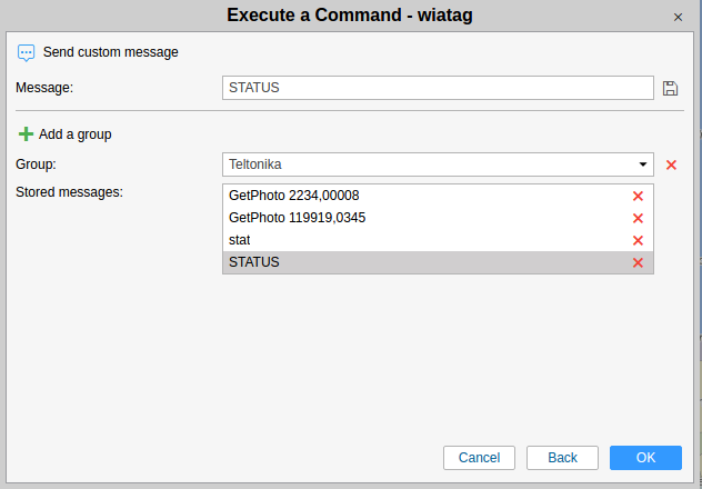 To avoid such a situation we implemented parameters grouping in custom message sending dialog in Wialon beta version. All you need is to create a group, select a target parameter and click on “Save” button to add it to the group.