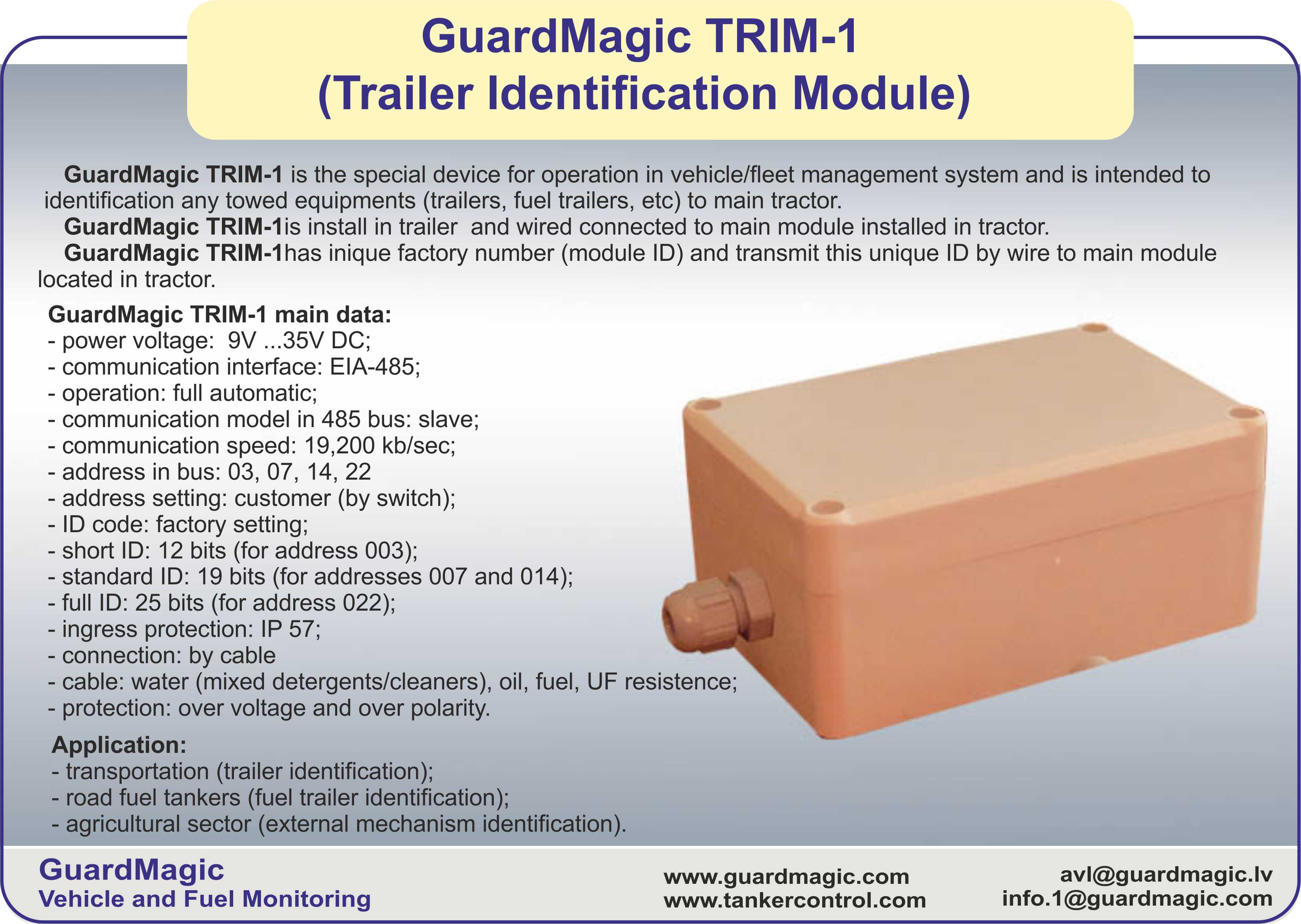 GuardMagic TRIM-1 is the special device for operation in vehicle/fleet management system and is intended to