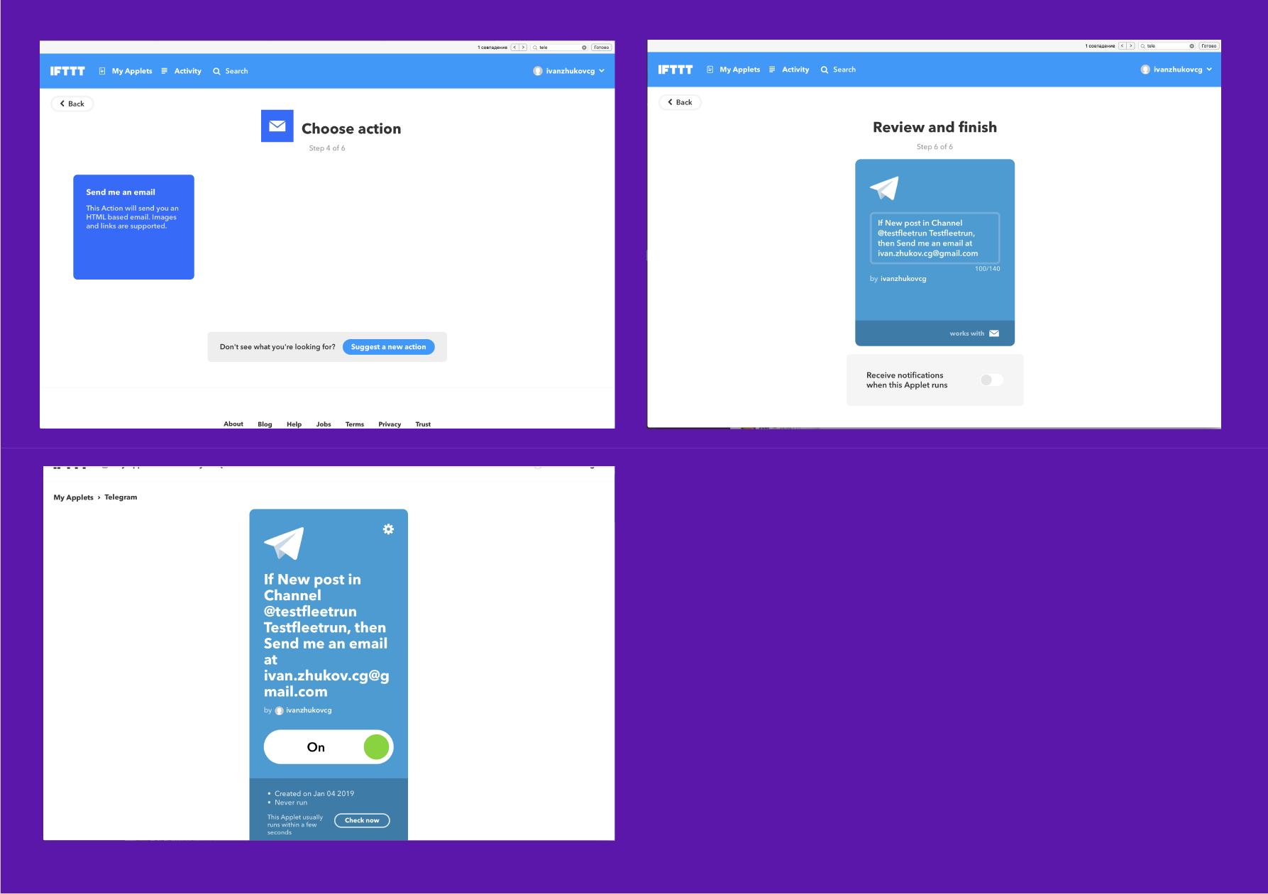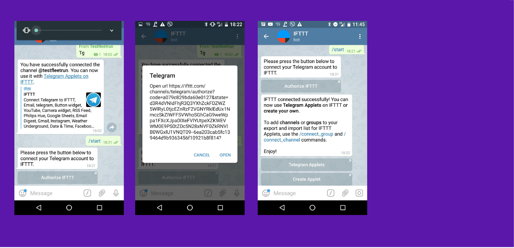 Authorize IFTTT. Заканчиваем интеграцию телеграма с IFTTT, следуя инструкциям на экране