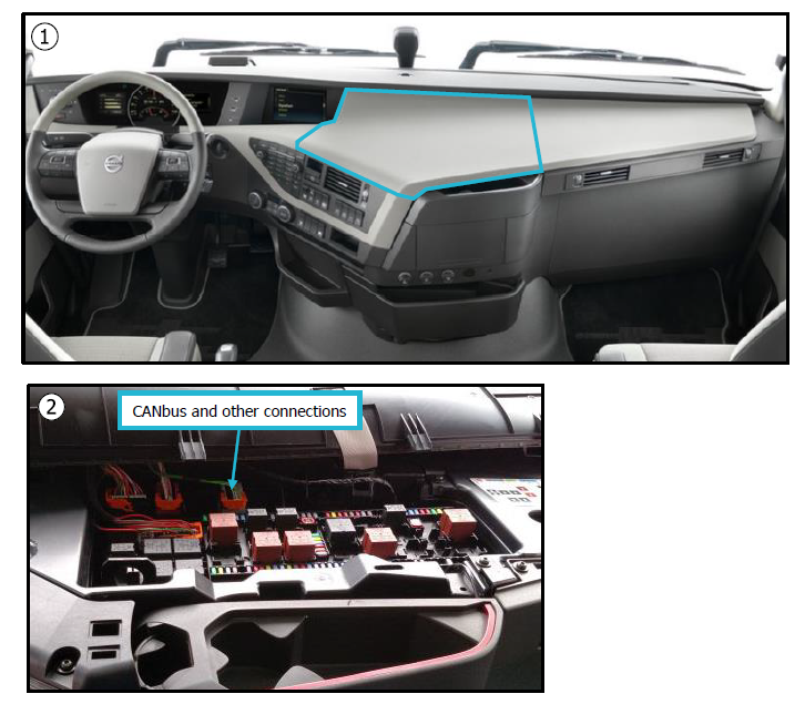 Recently we equiped Volvo FH at the CanBUS. It's located in the dashboard, close to the fuse box.