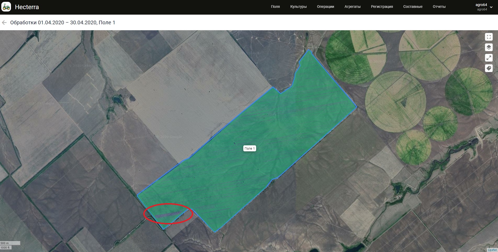 Основным условием определения потенциальных обработок является то, что длина трека объекта должна быть не менее 80% от периметра поля.