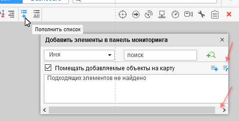 После выходных панель Добавить элементы в панель мониторинга, вызываемая по кнопке Пополнить список, отображается с горизонтальной прокруткой, что очень неудобно. И смотрится не очень. Не хватает несколько пикселей.