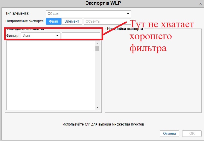 Предлагаю добавить такой-же составной фильтра в импорт/экспорт объектов (скрин 2 и скрин 2), в CMS Manager (Скрин 4) и очень не хватает такого фильтра когда назначаешь права доступа (Скрин 5).