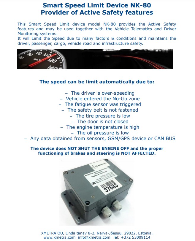 Smart Speed Limit Device NK-80 brings Active Safety.