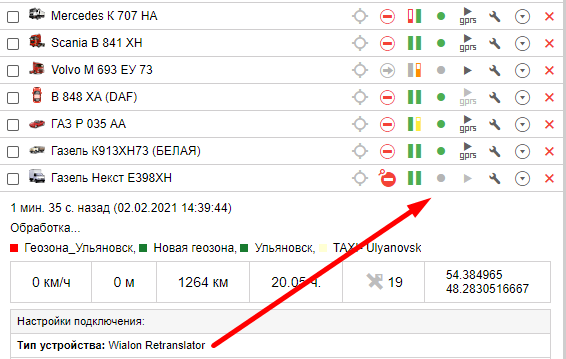 В первую очередь хочу сказать, что сам по себе процесс ретрансляции не влияет на состояние соединения. Мы не знаем и не различаем, какой источник у приходящих сообщений - ретрансляция данных или сам трекер. Т.е. для системы нет никакой разницы, откуда данные поступают.