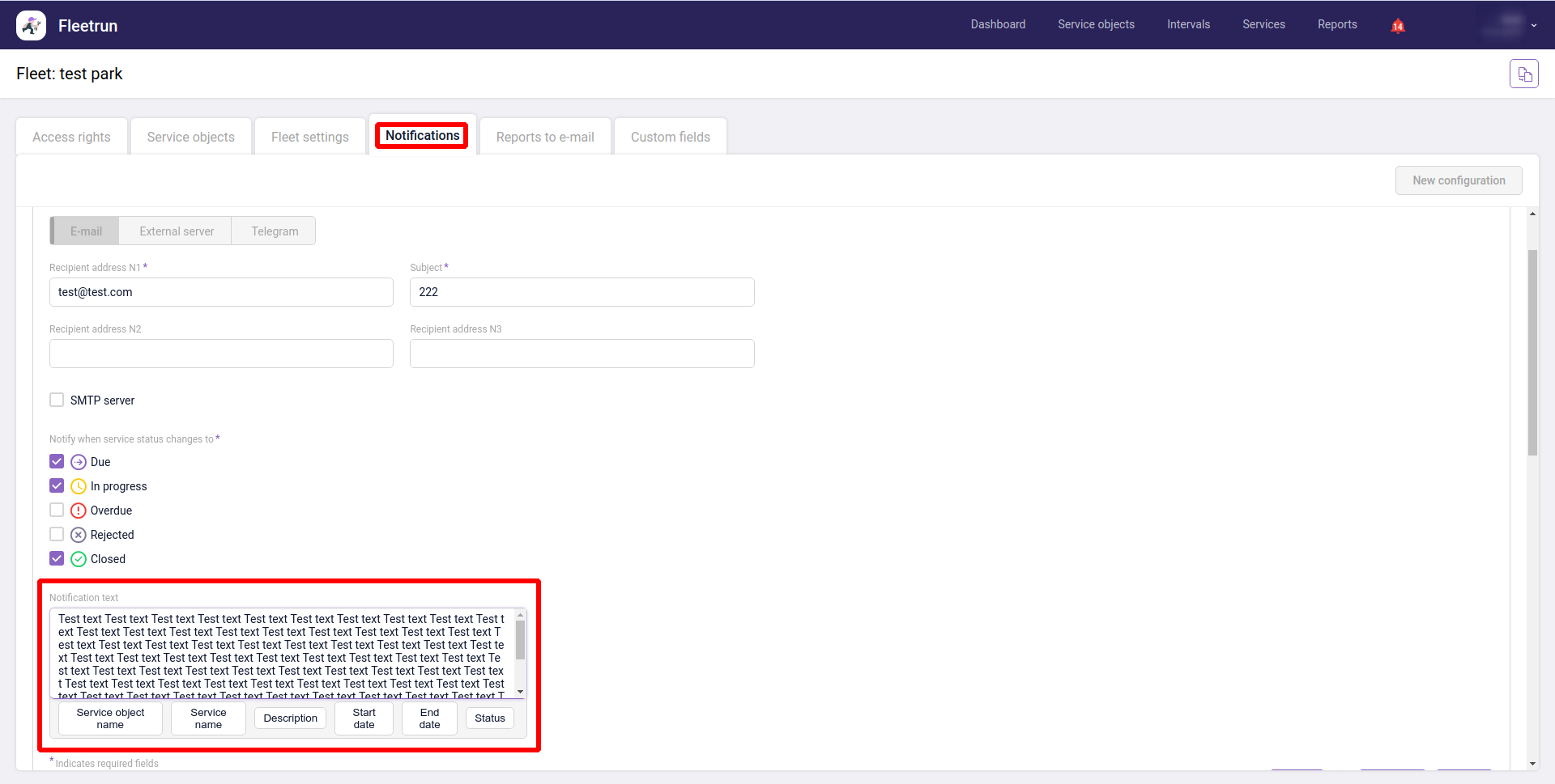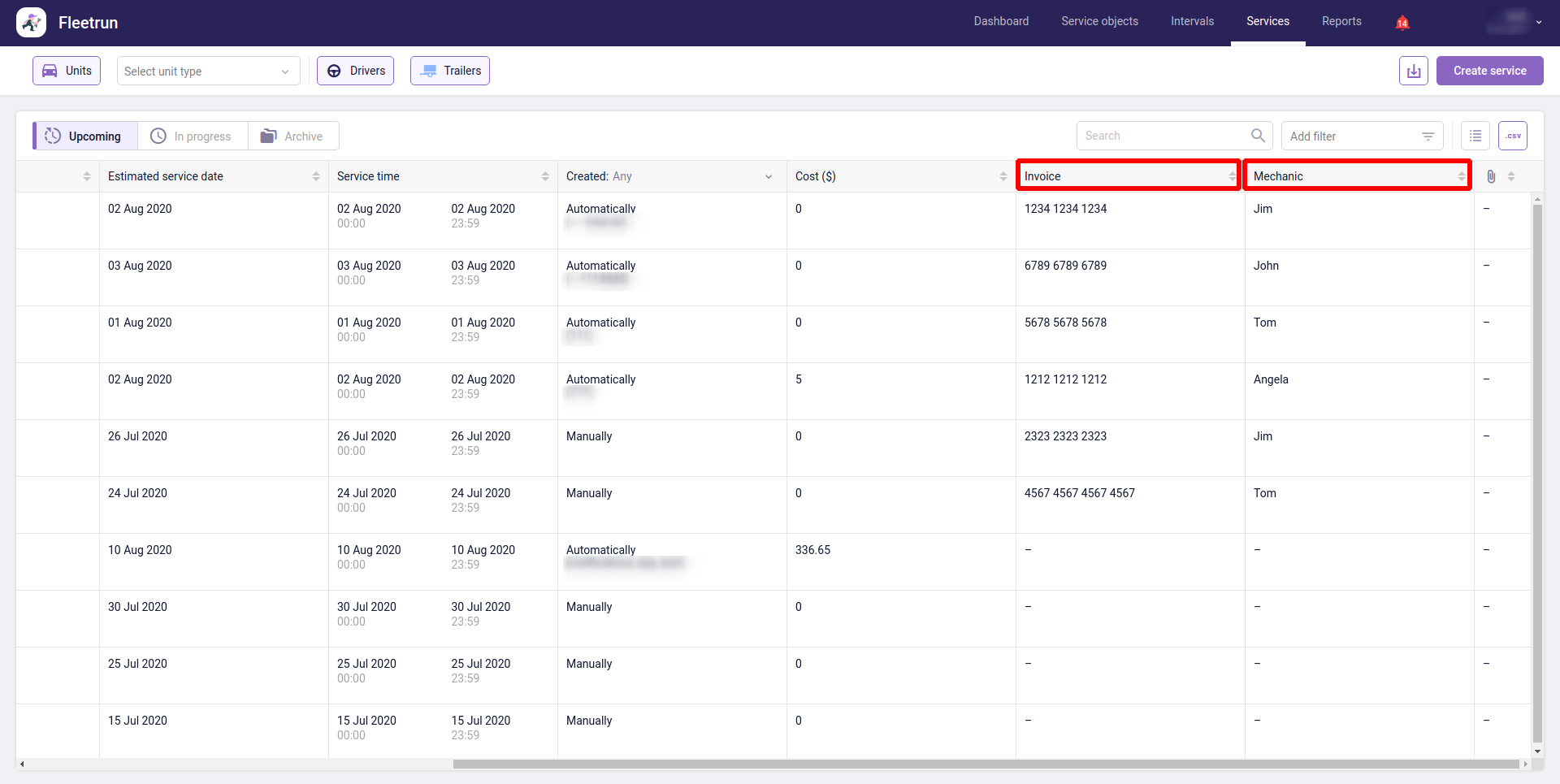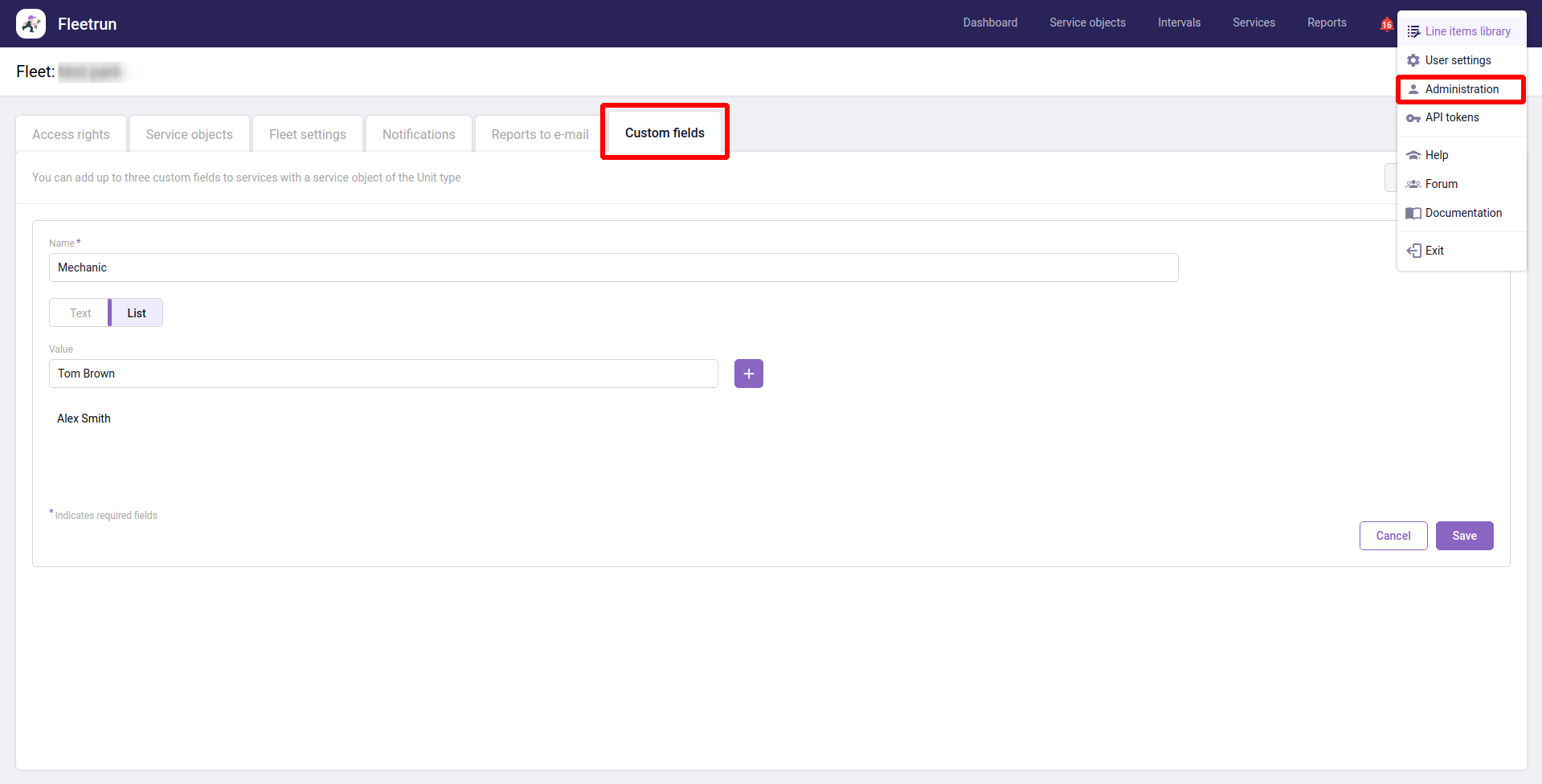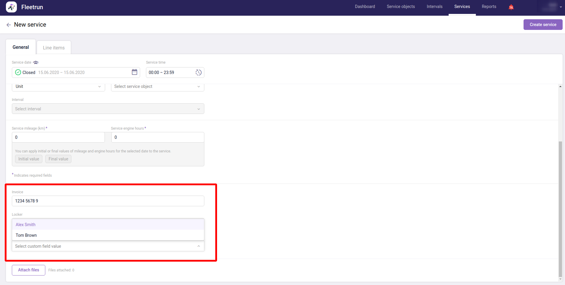 From now on, you can add custom fields that are applicable for your particular fleet to "Service". This functionality is supposed to make service data more complete.