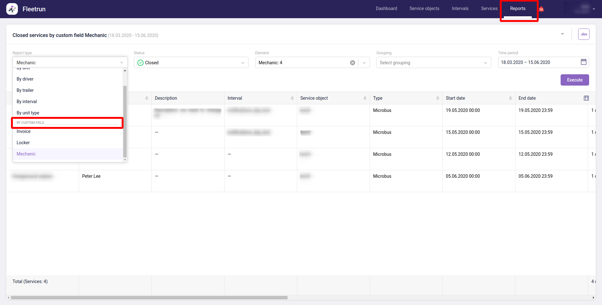 Also, you can execute report by custom field in order to see all the services where it is filled in. Moreover, you can apply sorting for custom field values if needed.