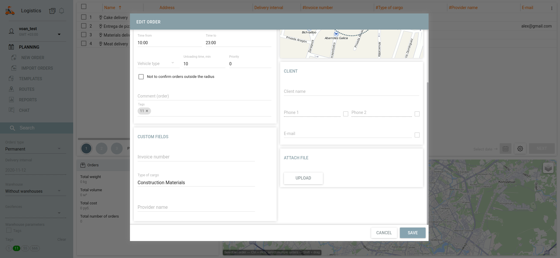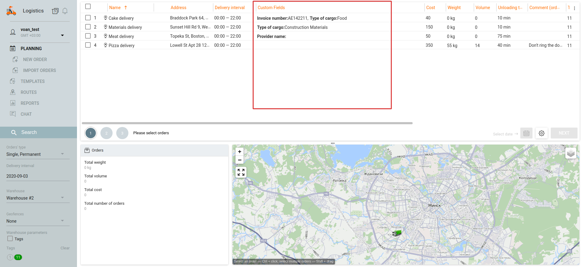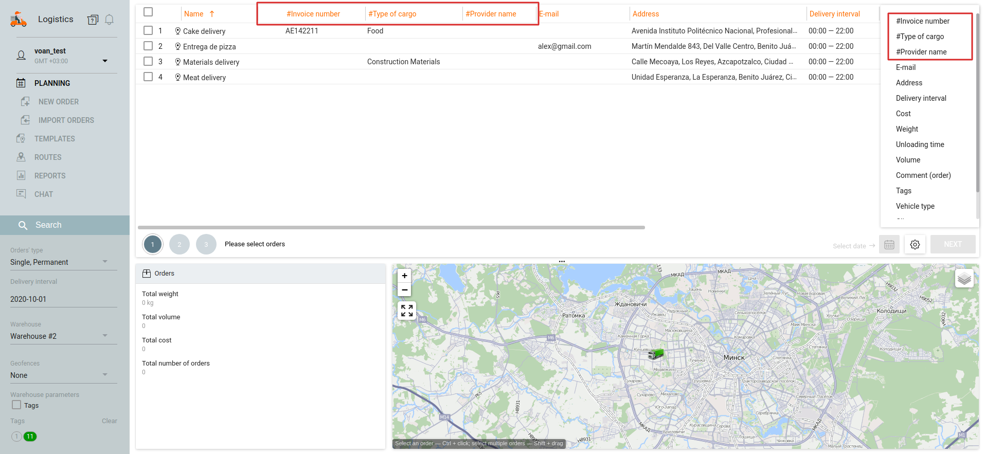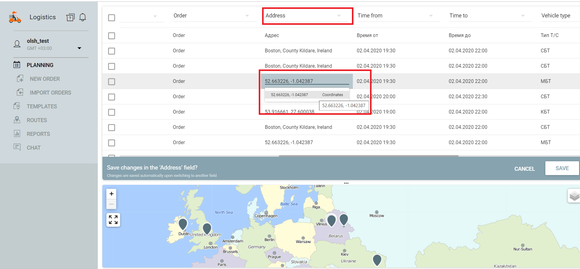 Also, when importing orders, coordinates can be entered in the “Address” field. This functionality will be useful if the address base consists of coordinates and addresses. Accordingly, now it is possible to import orders with both the address and coordinates.