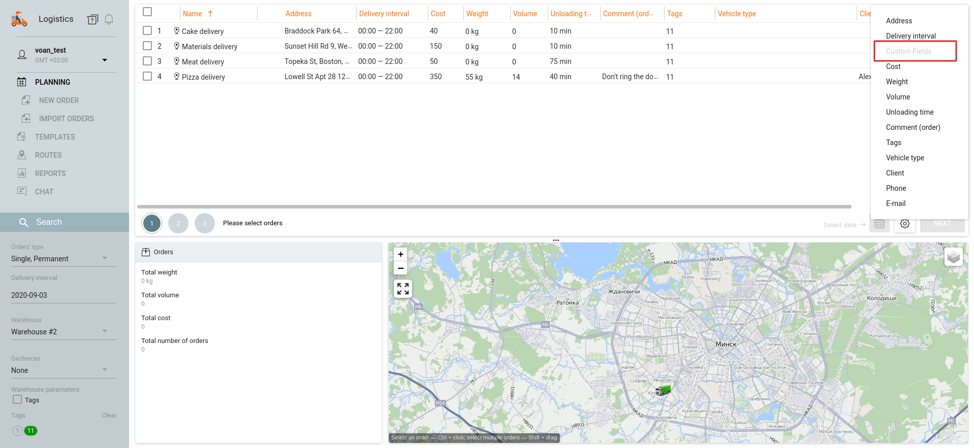 - In the Planning and Routes modes, you can now change the column order for a more convenient display of your data.