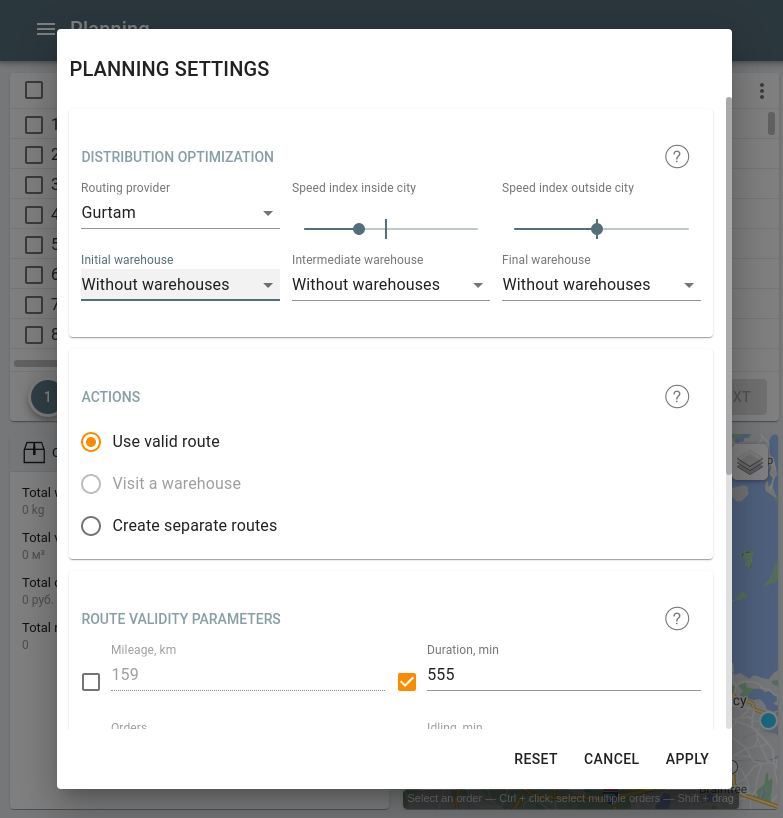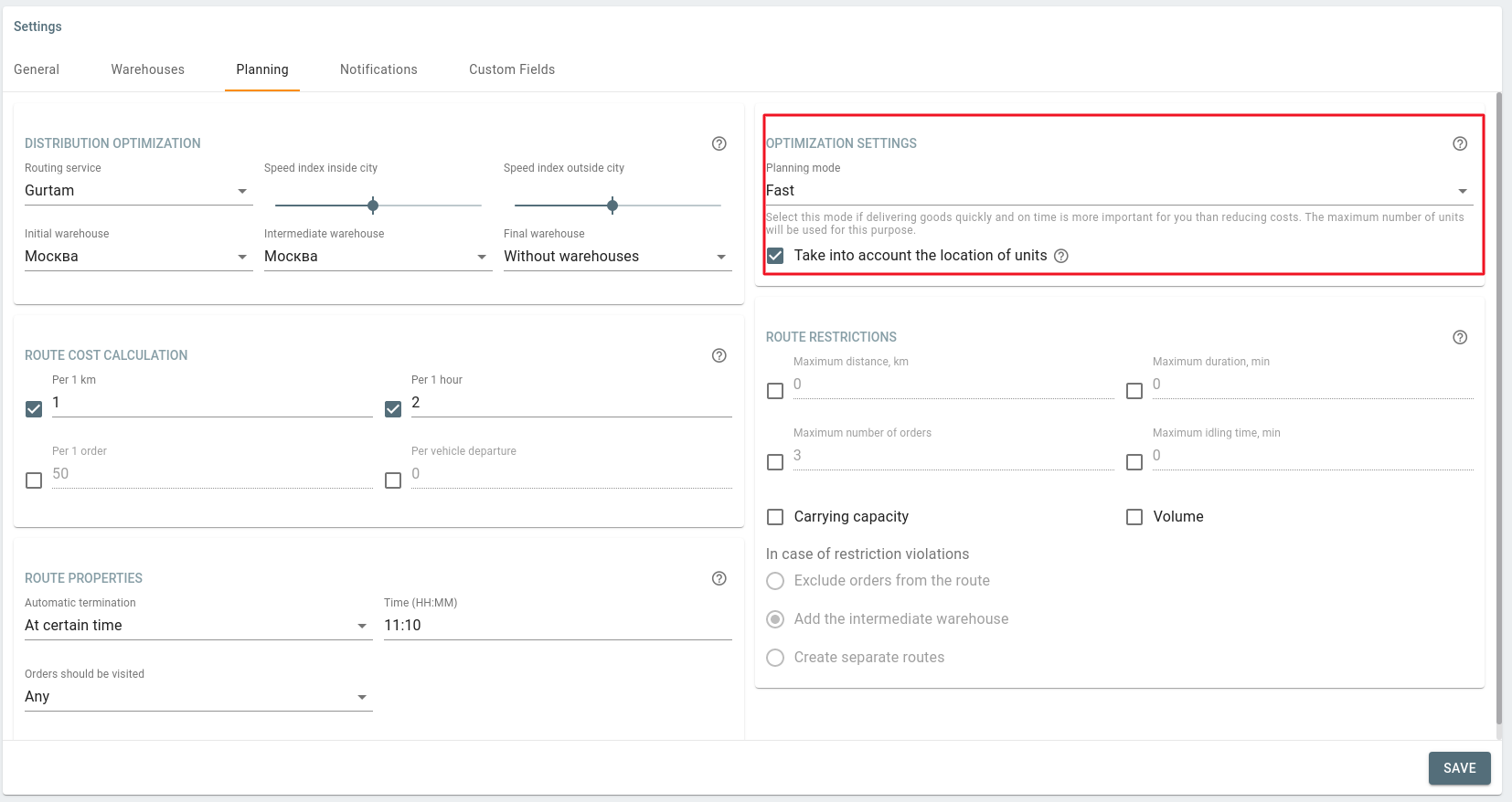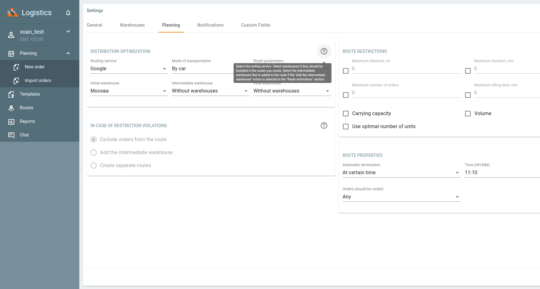 Besides, we have made improvements to the routes created from templates: now their cost is also calculated if its calculation parameters are specified on the Planning tab of the settings.