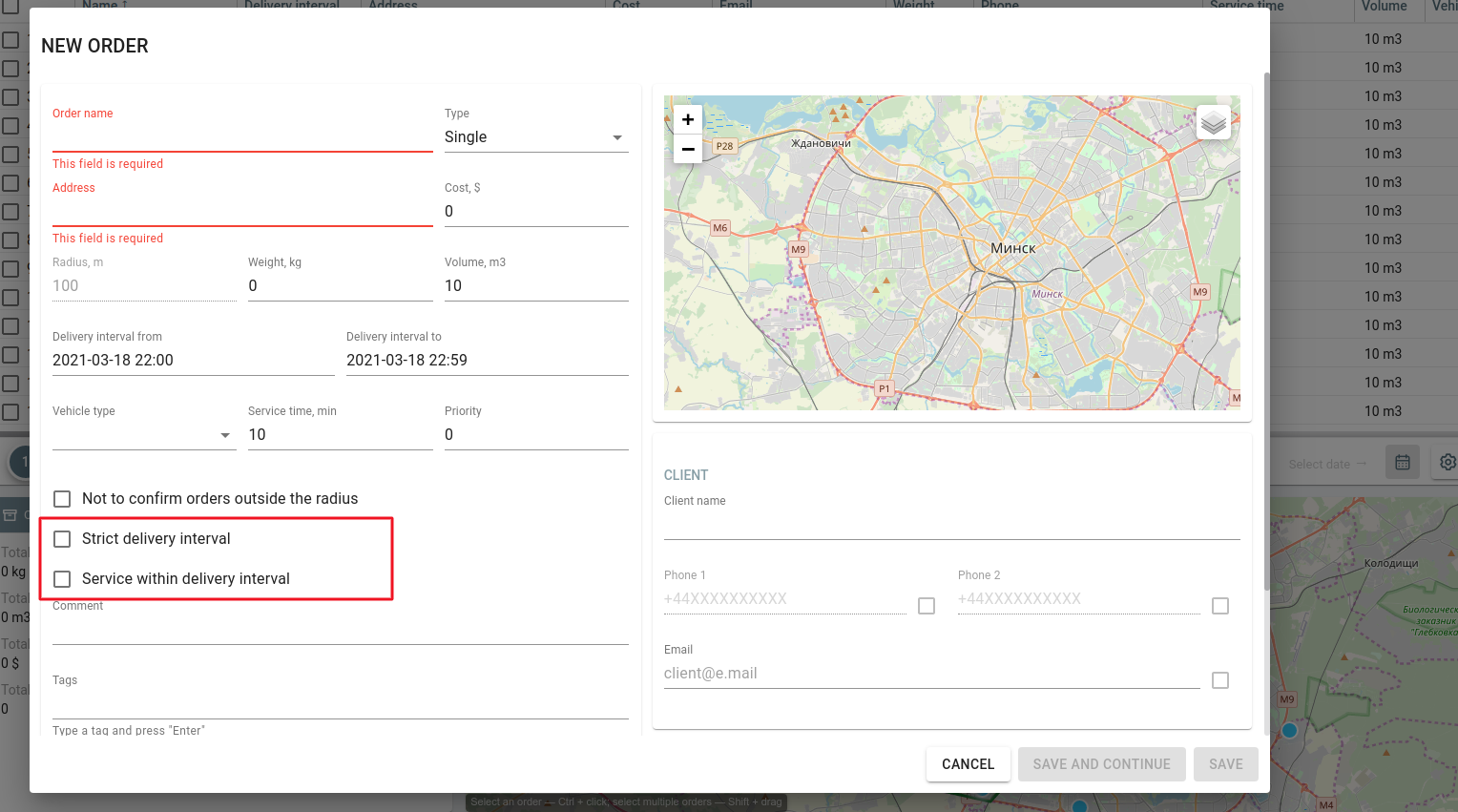 If the option is enabled, it is planned to deliver the order adhering to the delivery interval. If it is not possible, the order is excluded from the route.