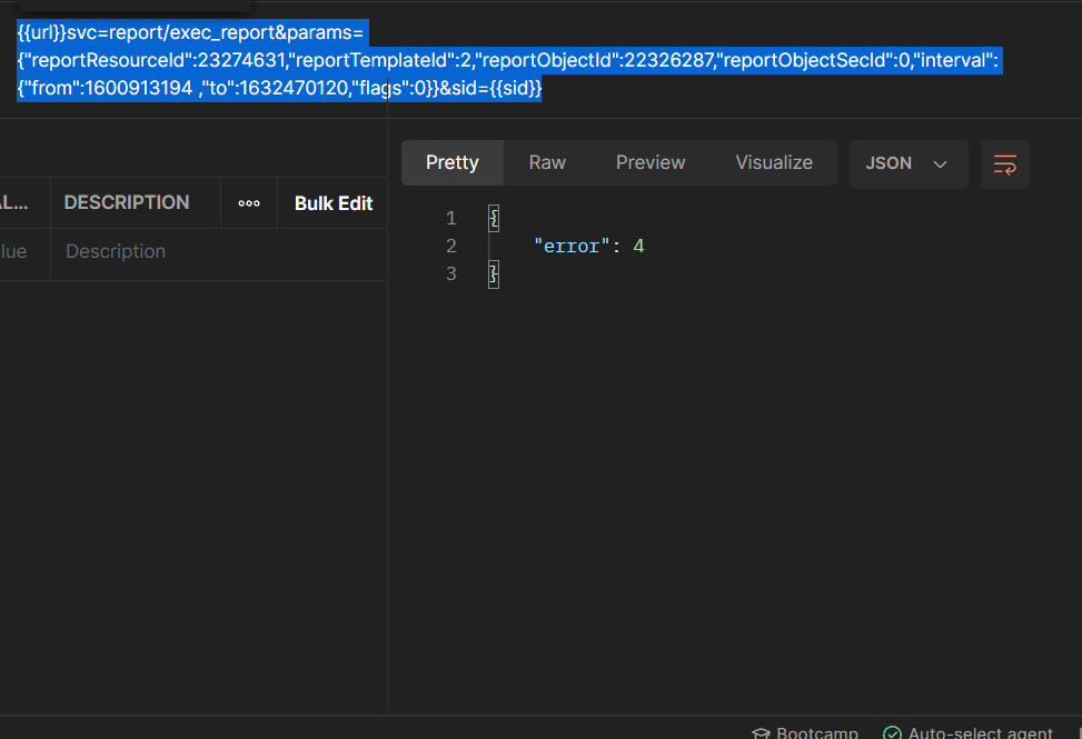 {{url}}svc=report/exec_report¶ms={"reportResourceId":23274631,"reportTemplateId":2,"reportObjectId":22326287,"reportObjectSecId":0,"interval":{"from":1600913194 ,"to":1632470120,"flags":0}}&sid={{sid}}
