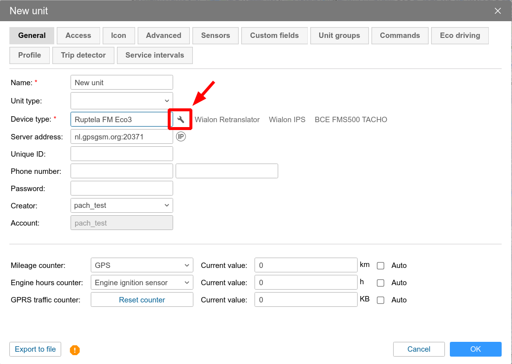 What device type do you use exactly? Do you have your unit in Wialon Hosting or in your own Wialon Local?